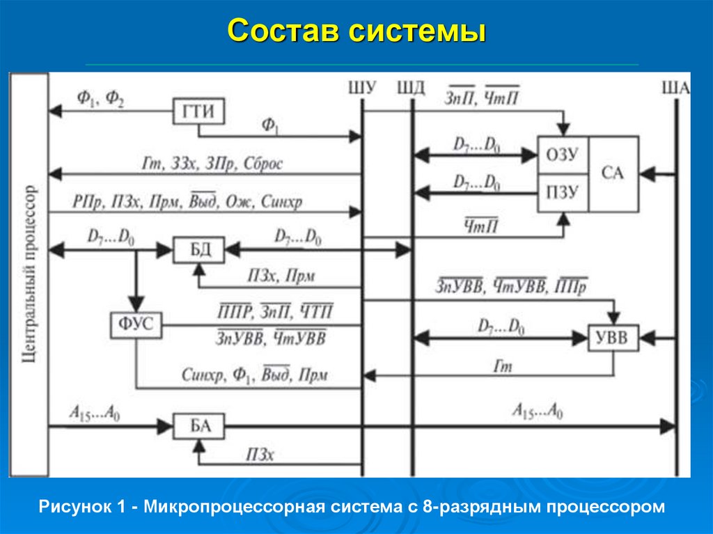 Рисунок 1 - Микропроцессорная система с 8-разрядным процессором5. Состав системы