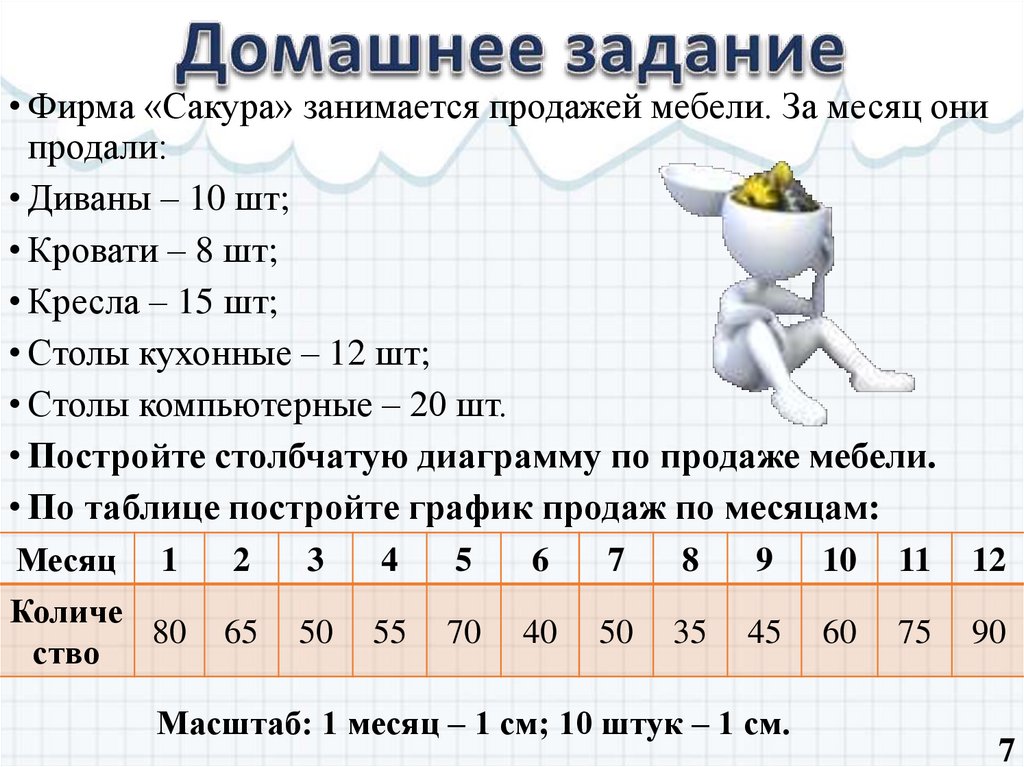 Масштаб: 1 месяц – 1 см; 10 штук – 1 см.