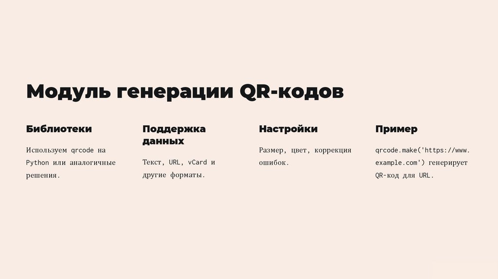 Архитектура веб-сайта для создания QR-кодов обеспечивает