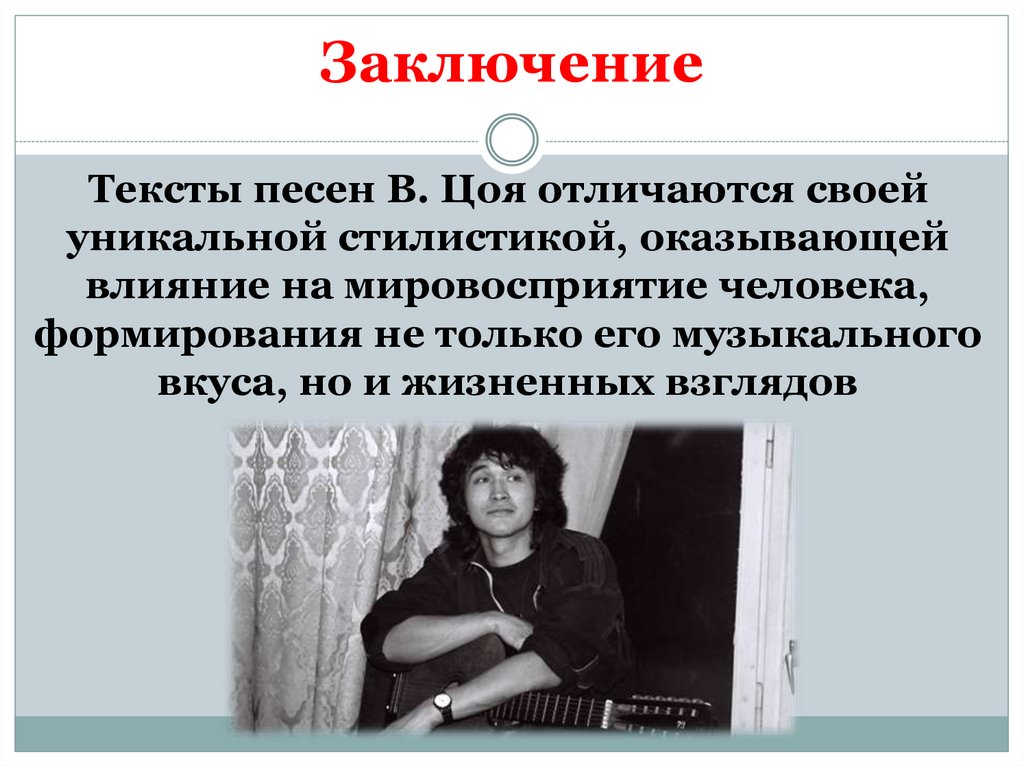 Тексты песен В. Цоя отличаются своейуникальной стилистикой, оказывающей