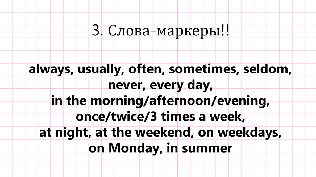 3. Слова-маркеры!!always, usually, often, sometimes, seldom,
