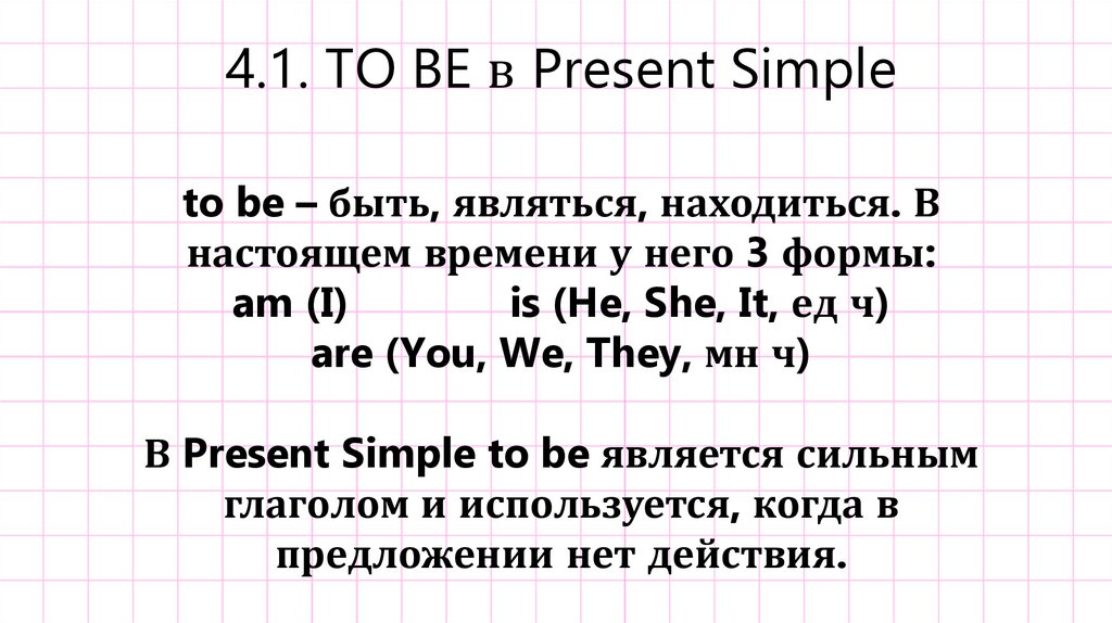 4.1. TO BE в Present Simpleto be – быть, являться, находиться. В