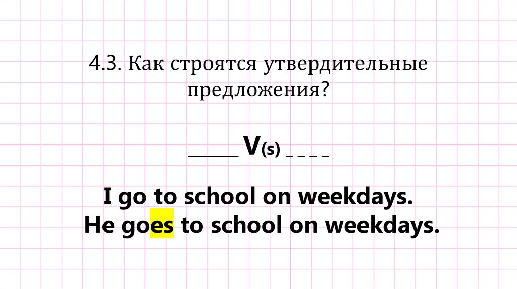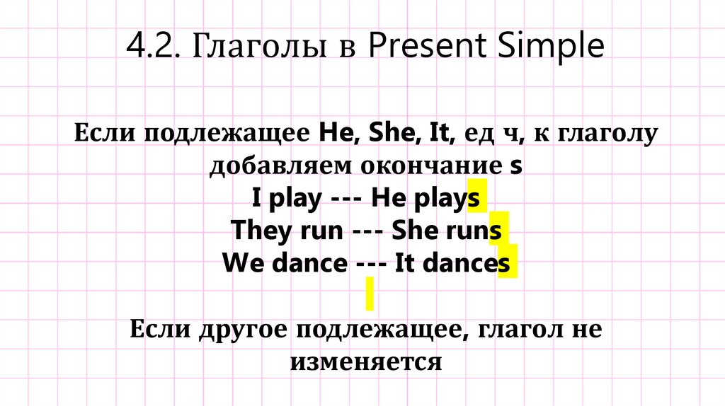 4.2. Глаголы в Present SimpleЕсли подлежащее He, She, It, ед ч, к глаголу