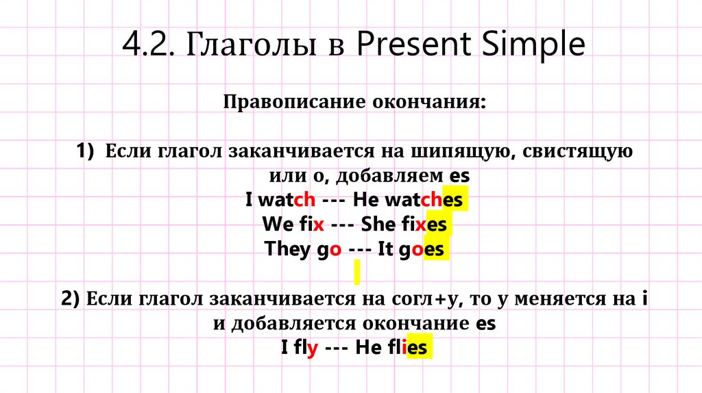 4.2. Глаголы в Present SimpleПравописание окончания: