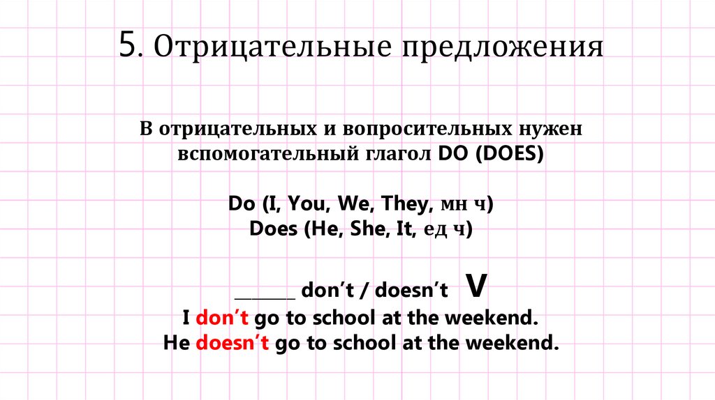 5. Отрицательные предложенияВ отрицательных и вопросительных нужен