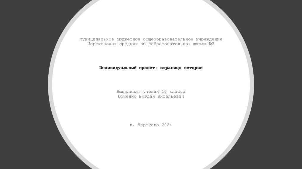 1. Муниципальное бюджетное общеобразовательное учреждение Чертковская средняя общеобразовательная школа №3 Индивидуальный проект: