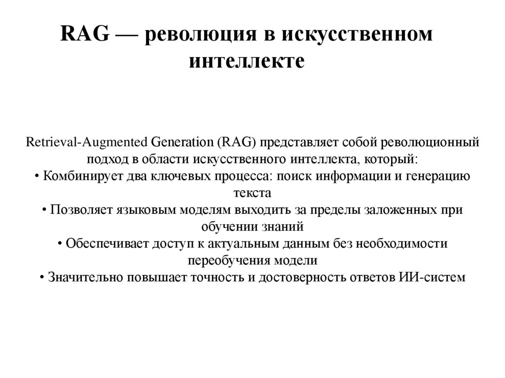 Retrieval-Augmented Generation (RAG) представляет собой революционный