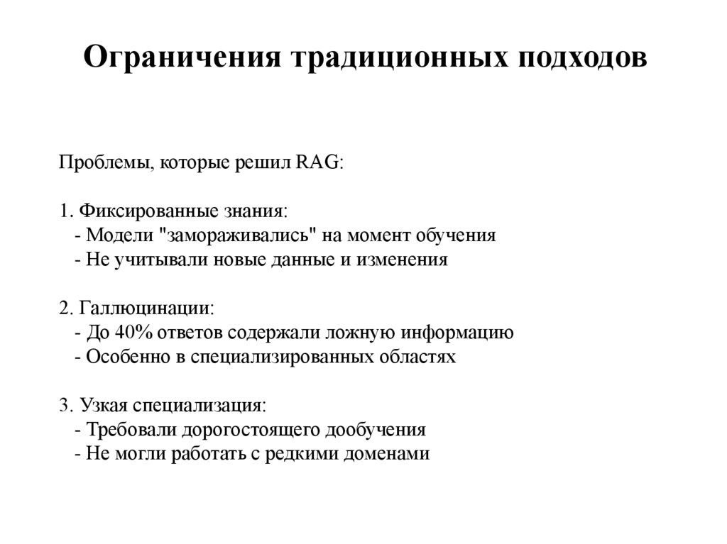 Ограничения традиционных подходовПроблемы, которые решил RAG: