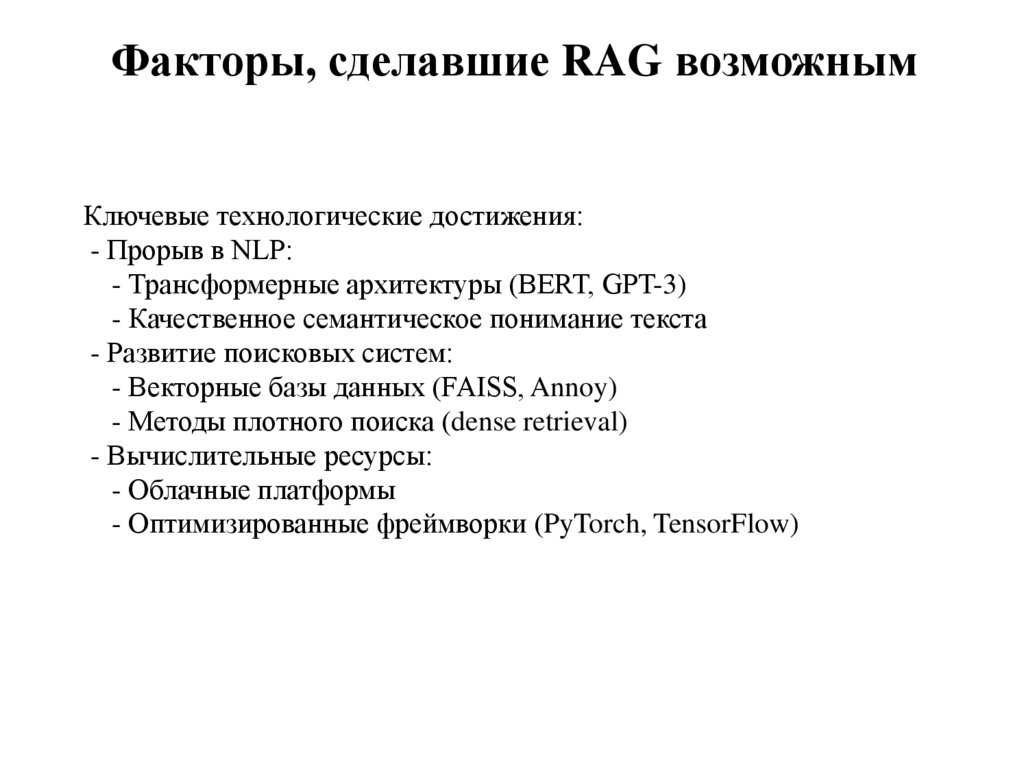 Факторы, сделавшие RAG возможнымКлючевые технологические достижения: