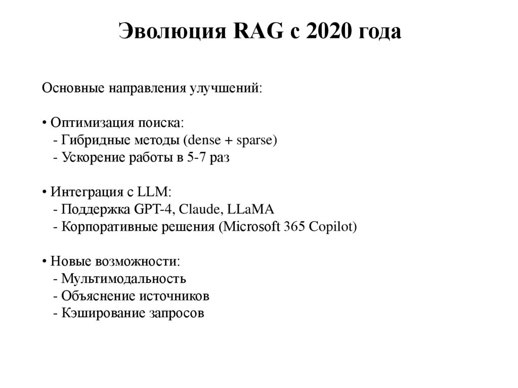 Эволюция RAG с 2020 годаОсновные направления улучшений:
