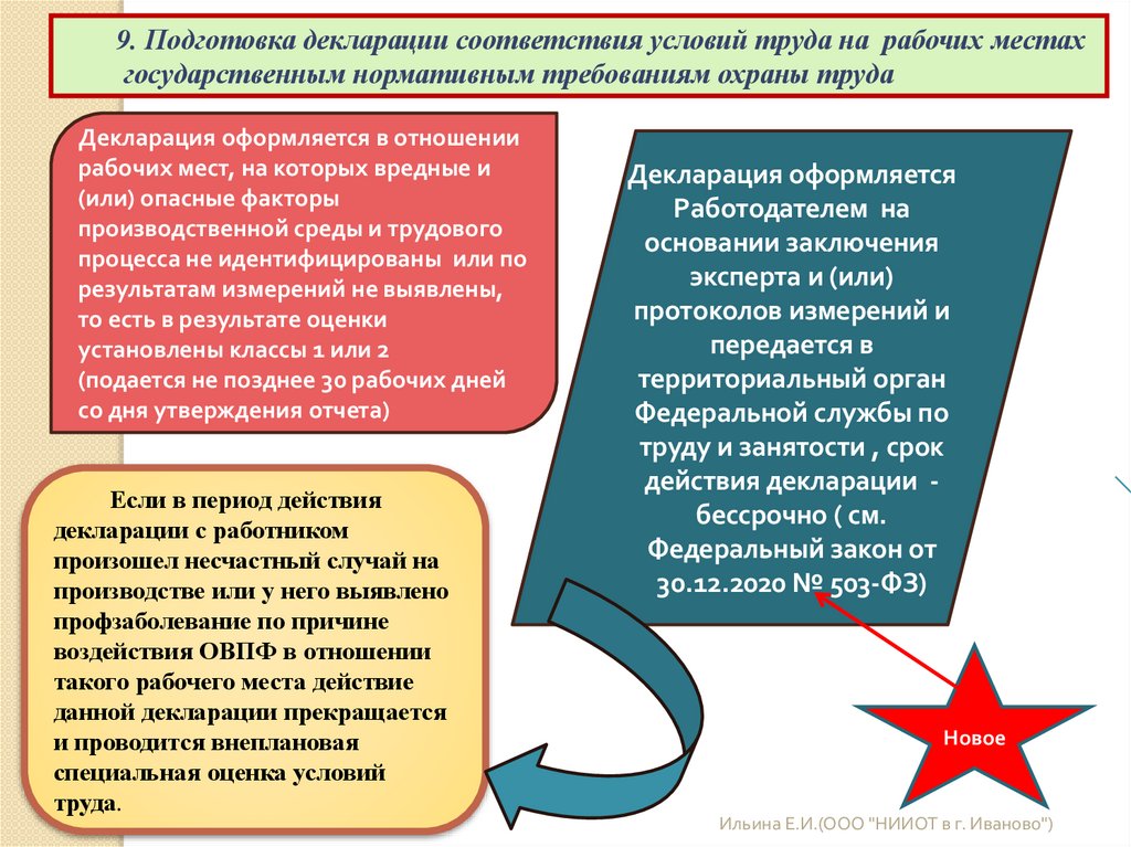 труду Декларацию (в 2-х экз.) соответствия условий труда