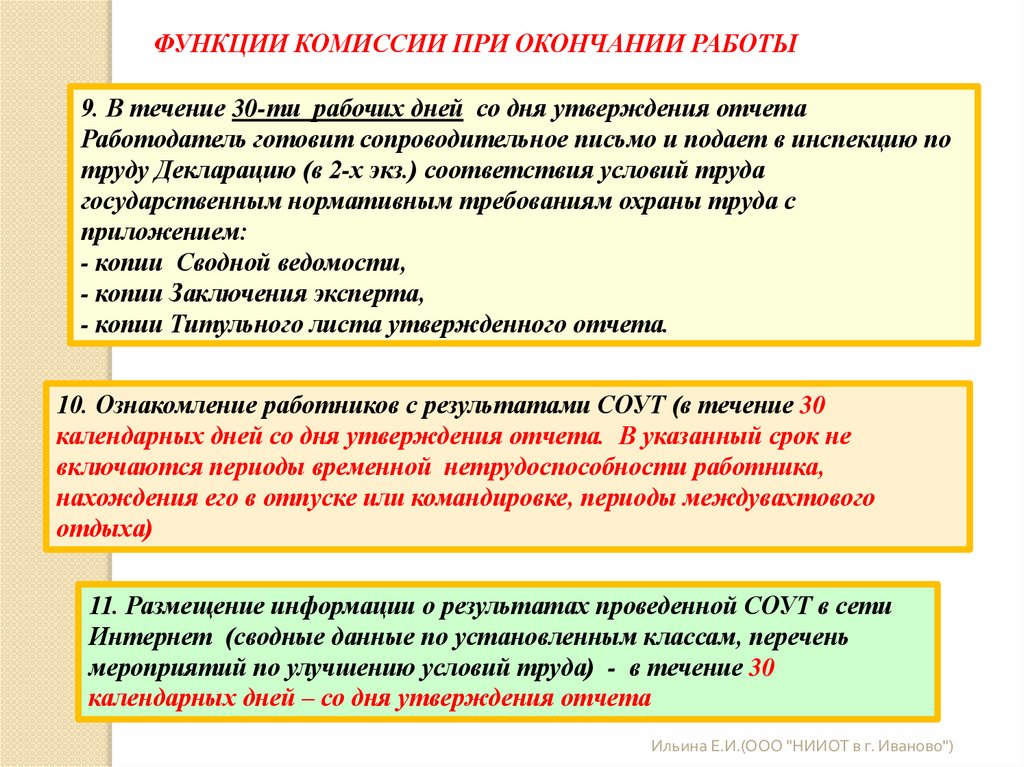 10. Ознакомление работников с результатами СОУТ (в течение 30