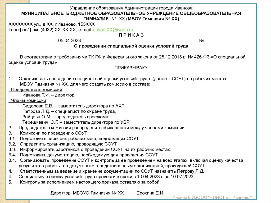 «Типовое положение об оценке условий труда на рабочих местах и порядок