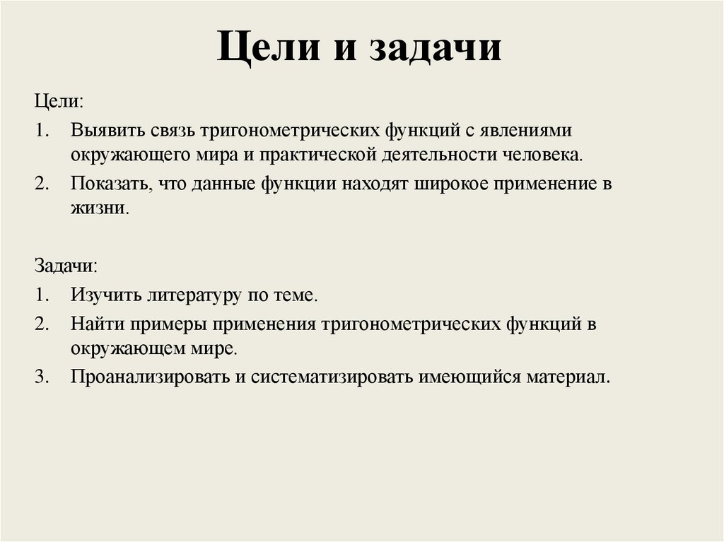 Цели:1. Выявить связь тригонометрических функций с явлениями