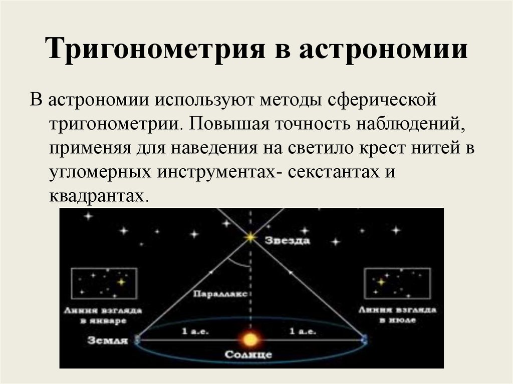 В астрономии используют методы сферическойтригонометрии. Повышая точность наблюдений,
