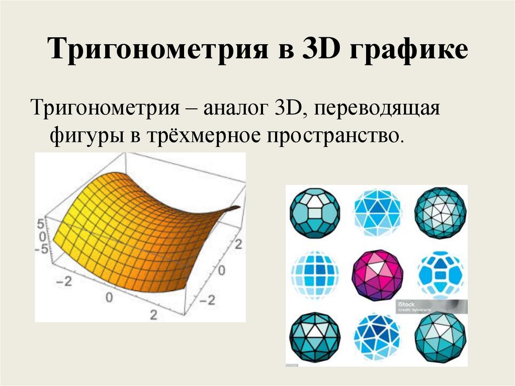 Тригонометрия – аналог 3D, переводящаяфигуры в трёхмерное пространство.