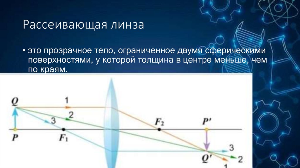 • это прозрачное тело, ограниченное двумя сферическимиповерхностями, у которой толщина в центре меньше, чем