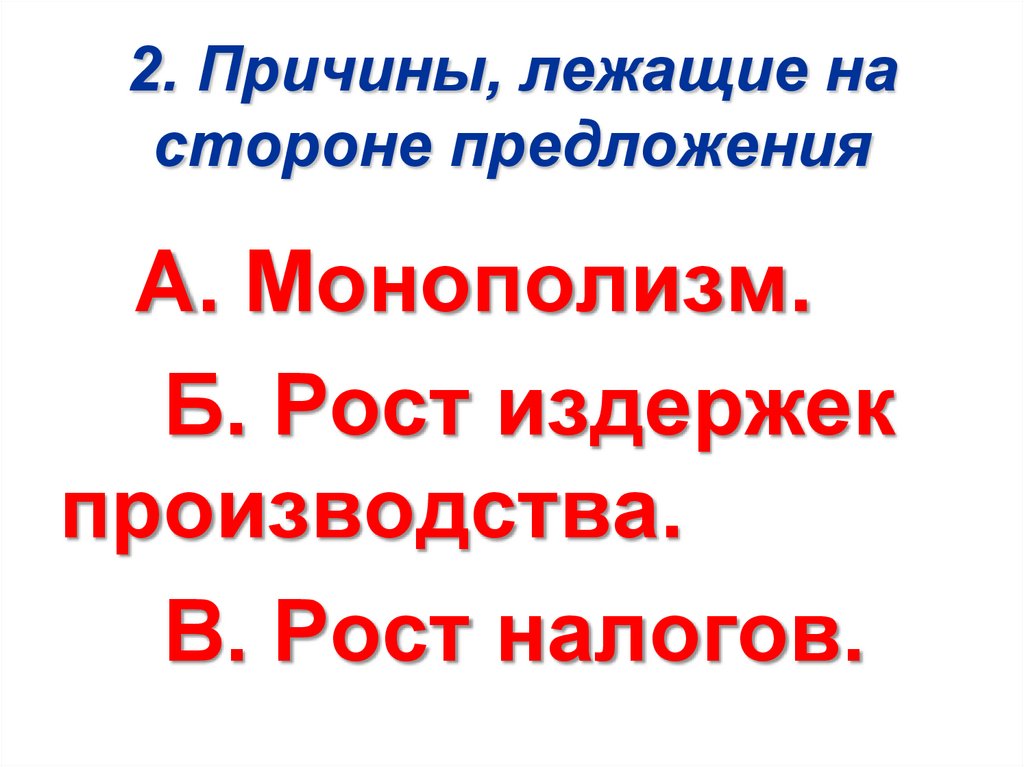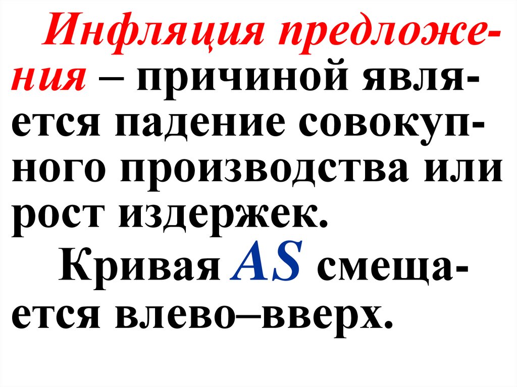 Инфляция предложения – причиной является падение совокупного производства илирост издержек.