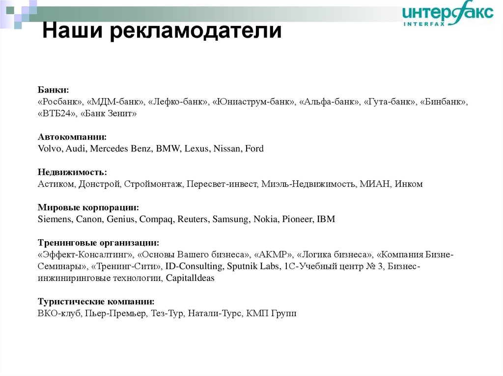 Интерфакс создает информационные продукты и средства коммуникации для тех, кто