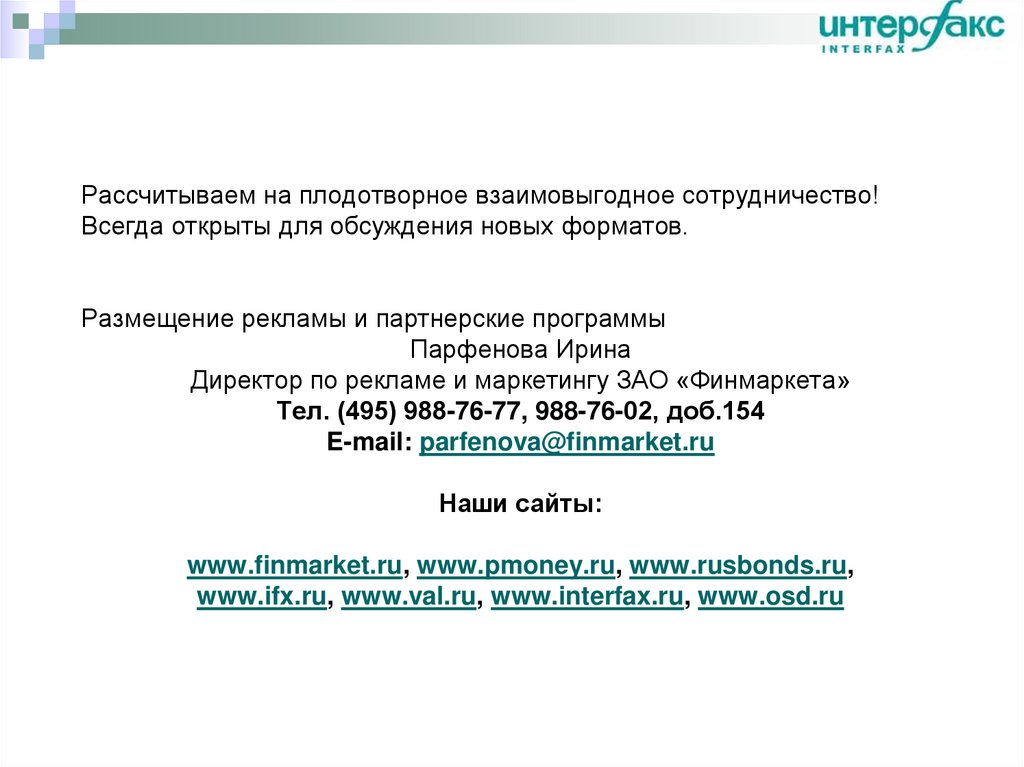www.ifx.ru, www.val.ru, www.interfax.ru, www.osd.ru