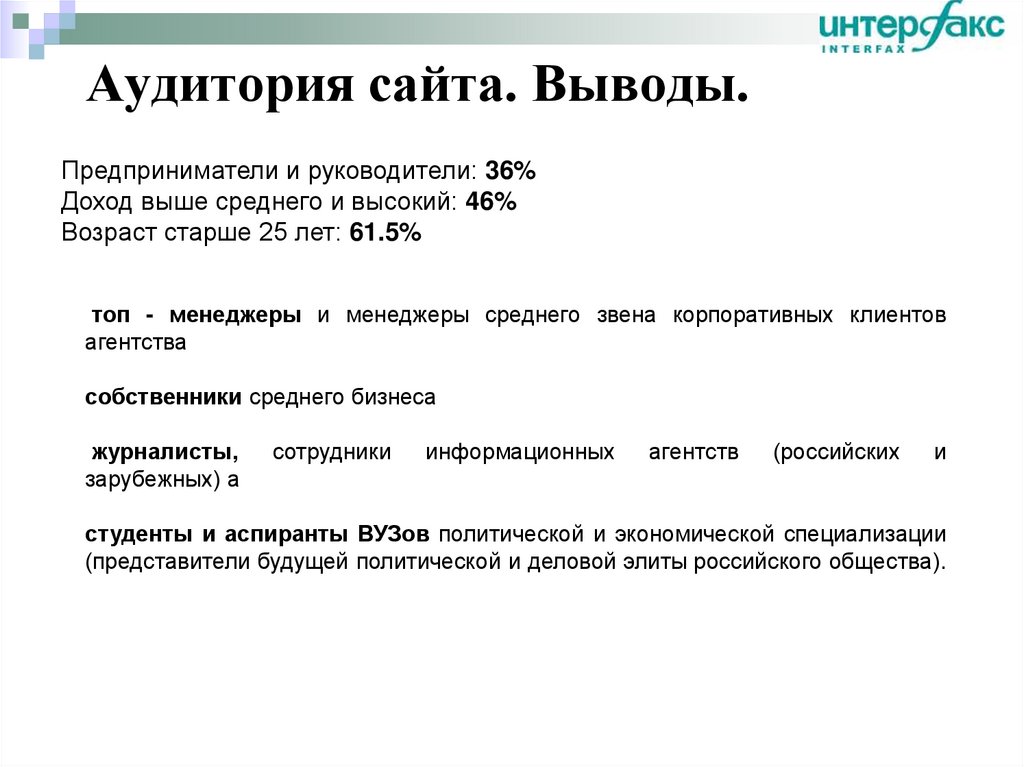 Интернет- ресурс информационного агентства "Интерфакс" специализируется на