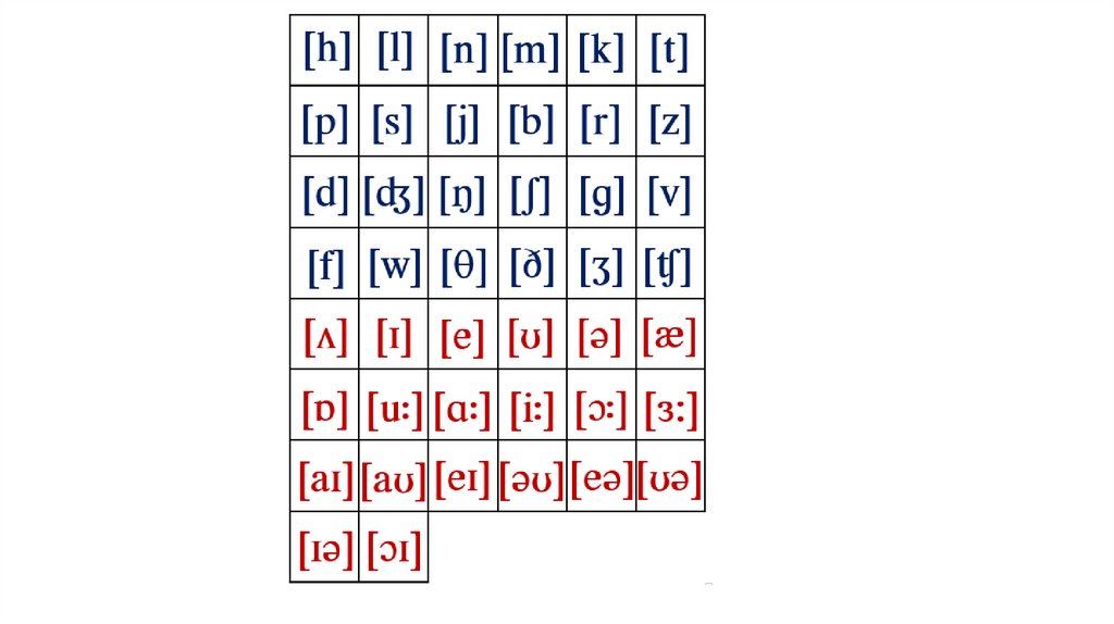 [bluː], [rɛd], [blæk], [waɪt], [ˈmʌðə], [ˈfɑːðə],