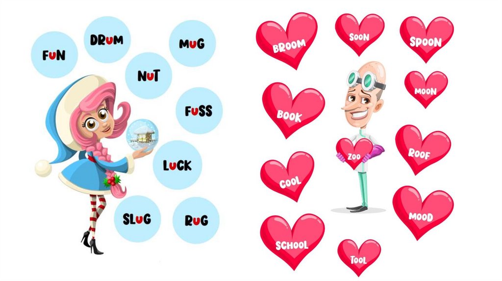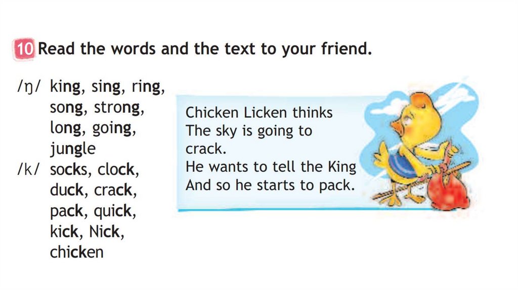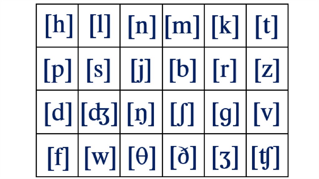/ten/, /sɪŋ/, /dʌk/, /sɒnɪk/, /ˈmʌðə/, /brʌðə/, /ʃuːz/,