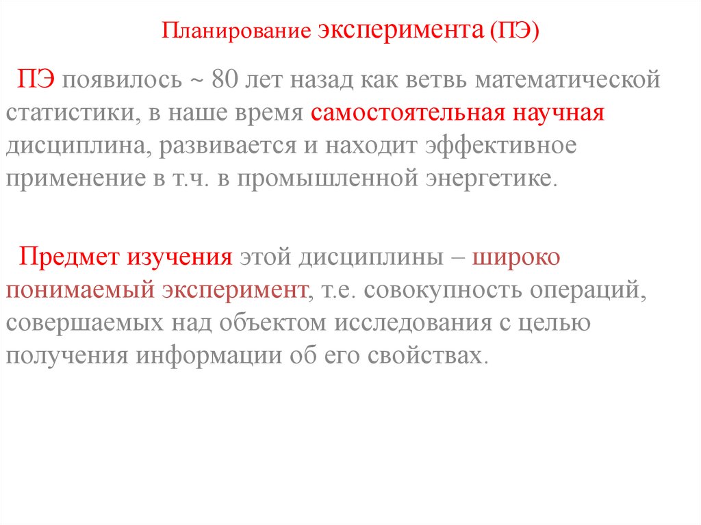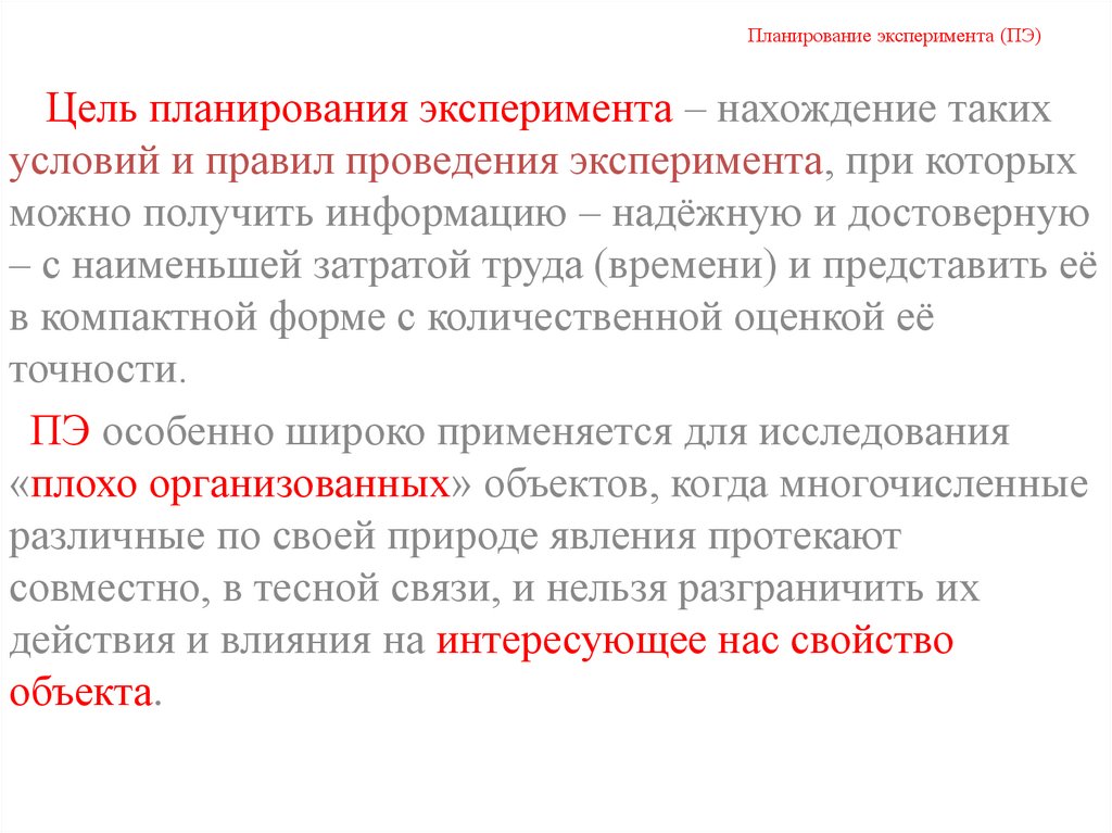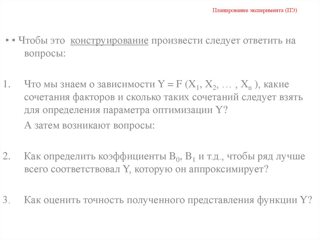 Планирование эксперимента (ПЭ) (Лекция №14)