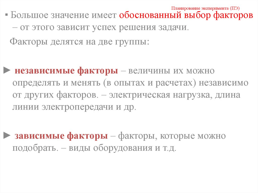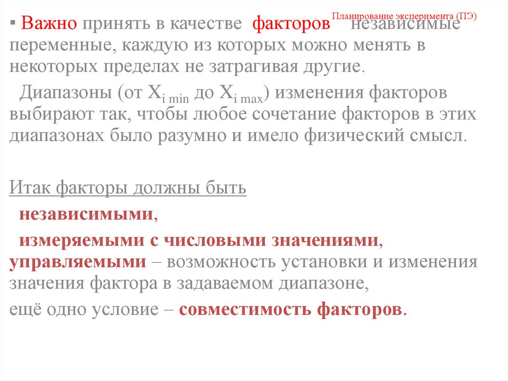эксперимента (ПЭ)▪ Важно принять в качестве факторов Планирование