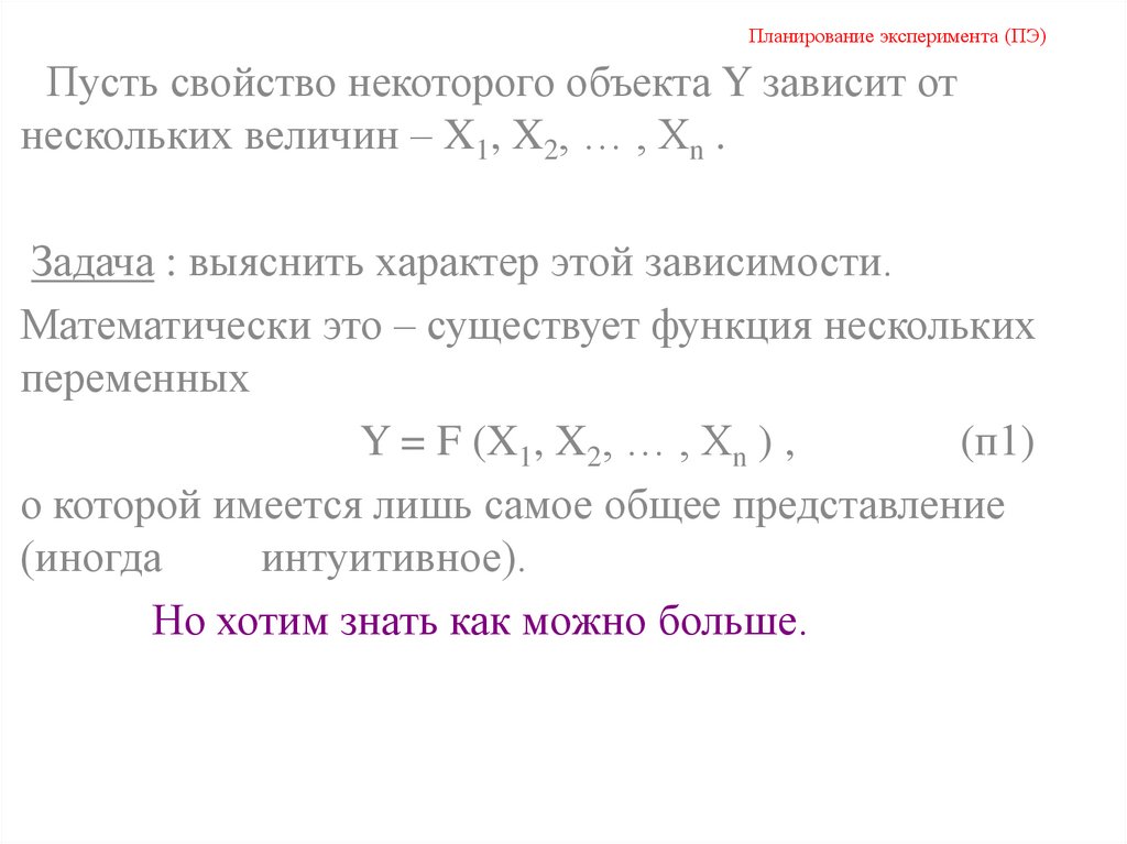 Пусть свойство некоторого объекта Y зависит отнескольких величин – X1, X2, … , Xn .