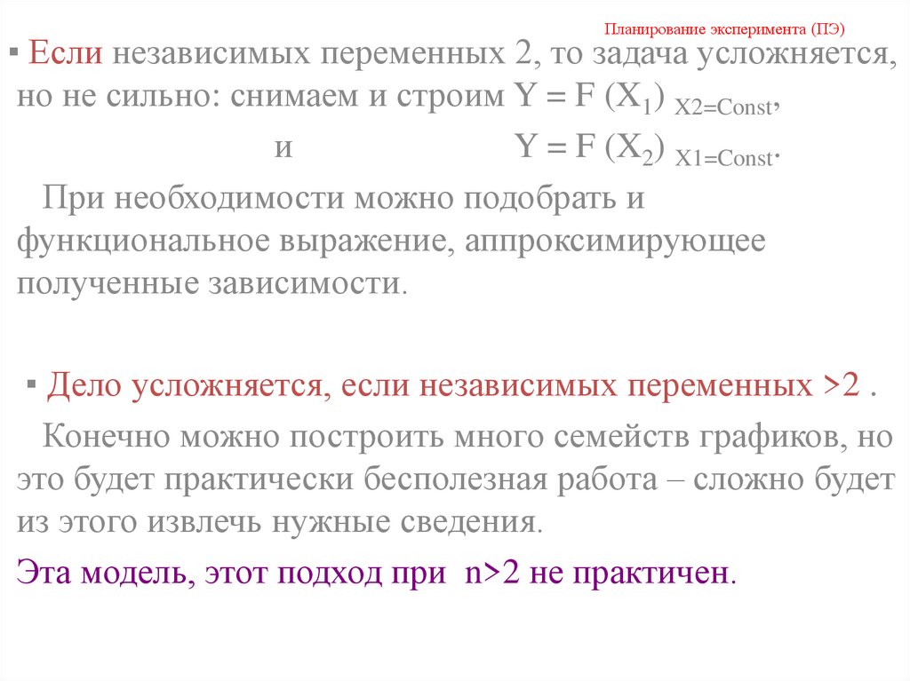 ▪ Если независимых переменных 2, то задача усложняется,но не сильно: снимаем и строим Y = F (X1) X2=Const,