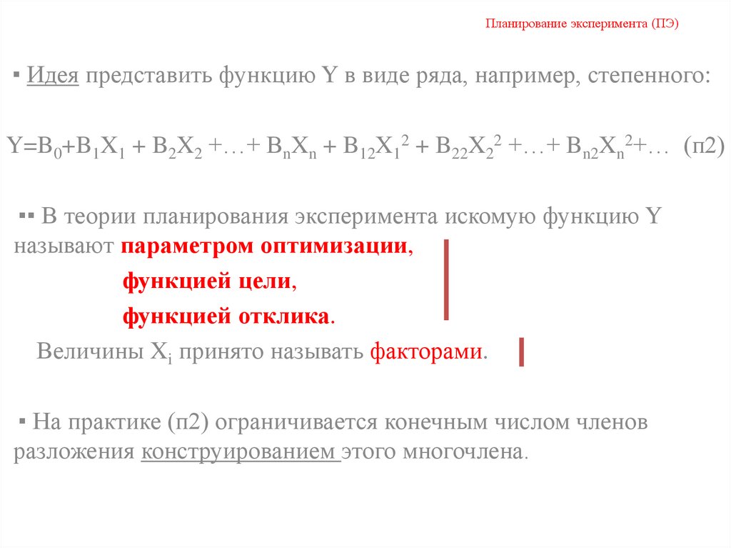 ▪▪ В теории планирования эксперимента искомую функцию Y