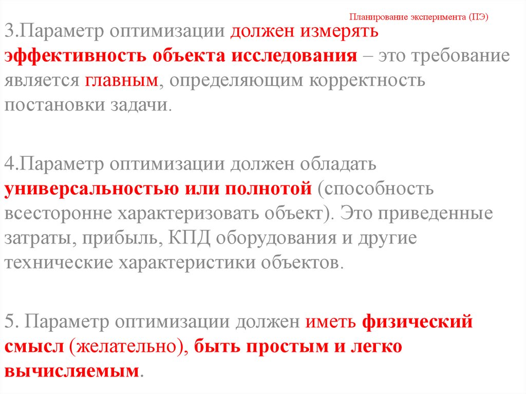3.Параметр оптимизации должен измерятьэффективность объекта исследования – это требование