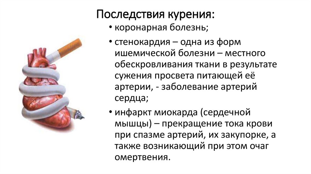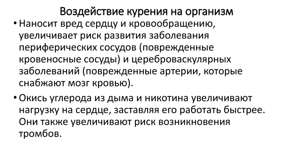 • Наносит вред сердцу и кровообращению,увеличивает риск развития заболевания
