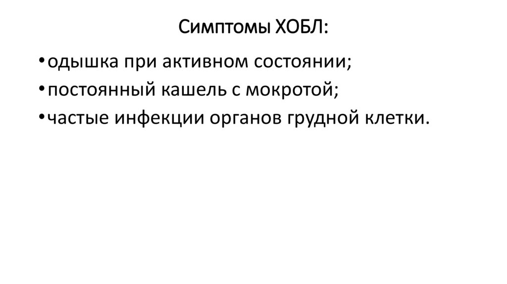 • одышка при активном состоянии;• постоянный кашель с мокротой;
