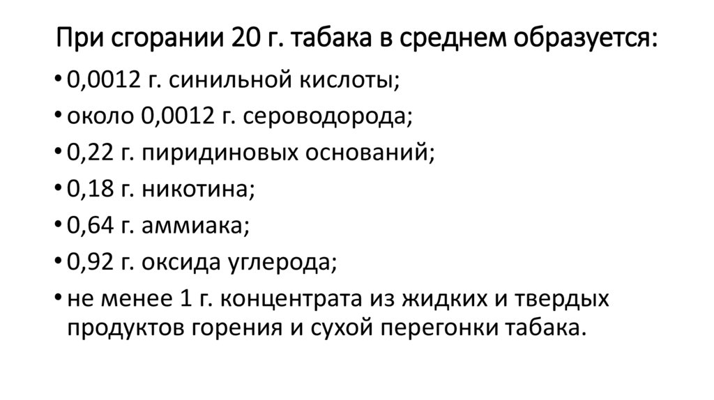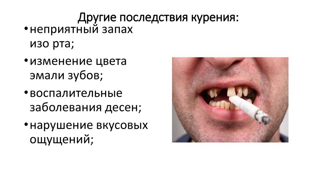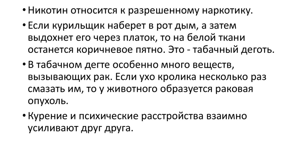 • Никотин относится к разрешенному наркотику.• Если курильщик наберет в рот дым, а затем