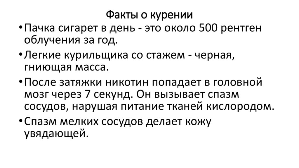 • Пачка сигарет в день - это около 500 рентгеноблучения за год.