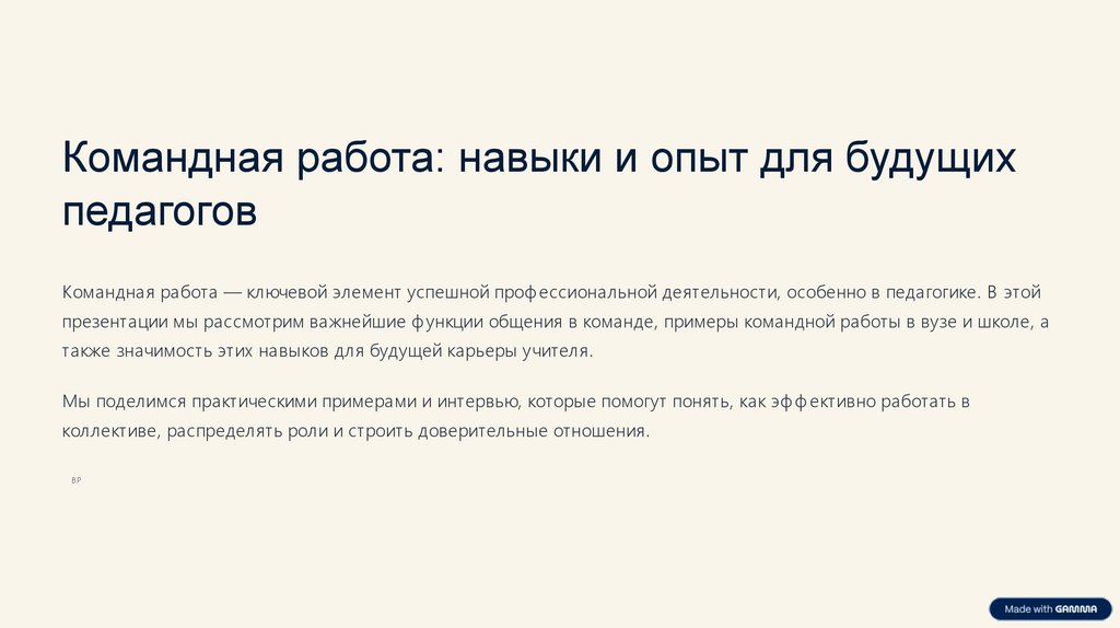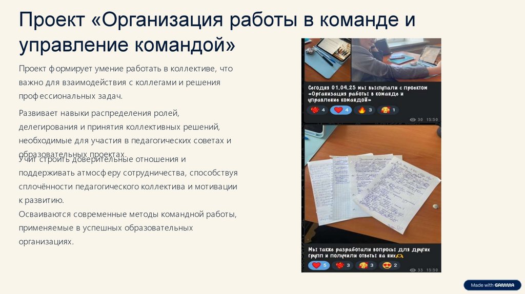 Командная работа — ключевой элемент успешной проф ессиональной деятельности, особенно в педагогике. В этой