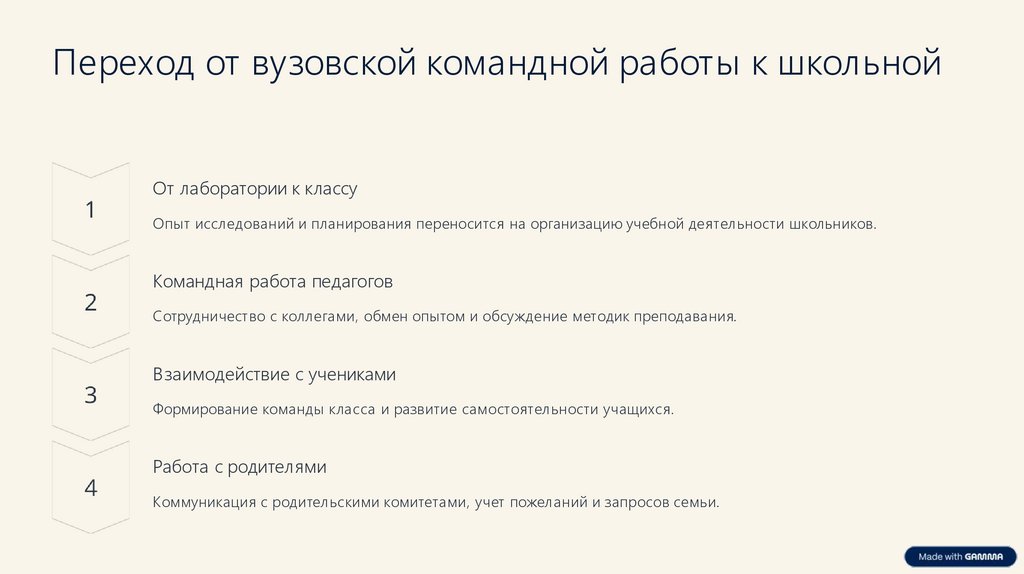 Переход от вузовской командной работы к школьнойОт лаборатории к классу