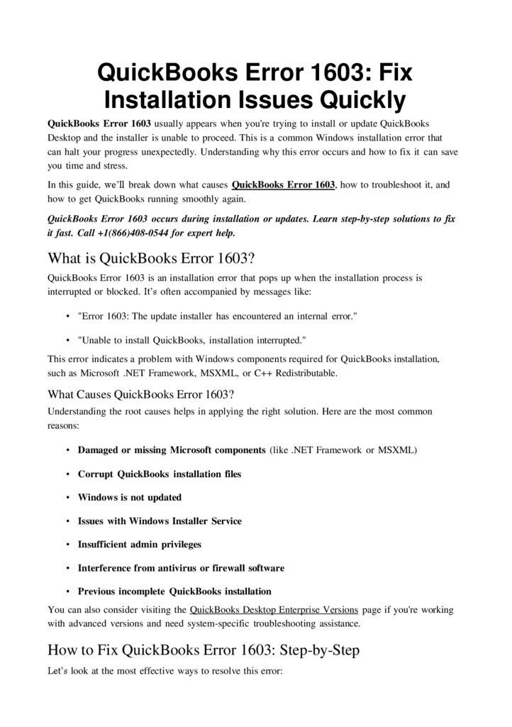 QuickBooks Error 1603 occurs during installation or updates. Learn step-by-step solutions to fix