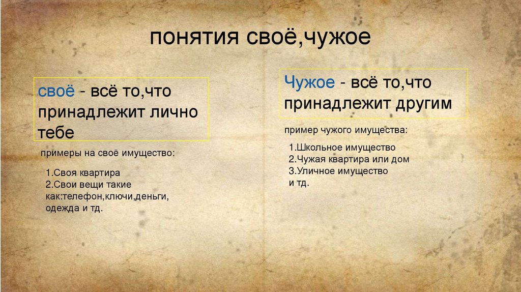 понятия своё,чужоесвоё - всё то,что
