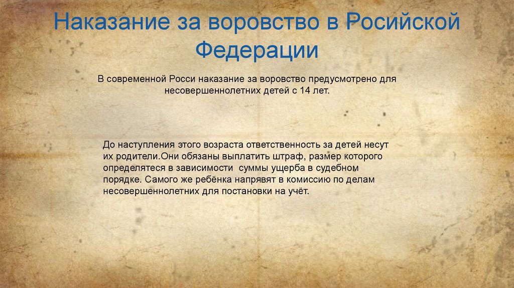 Наказание за воровство в РосийскойФедерации