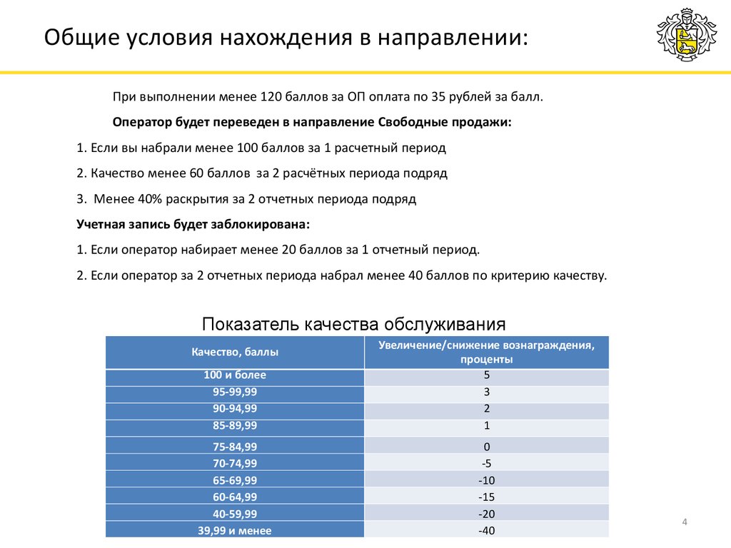 1. Если оператор набирает менее 20 баллов за 1 отчетный период.