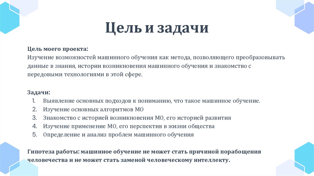 Гипотеза работы: машинное обучение не может стать причиной порабощения