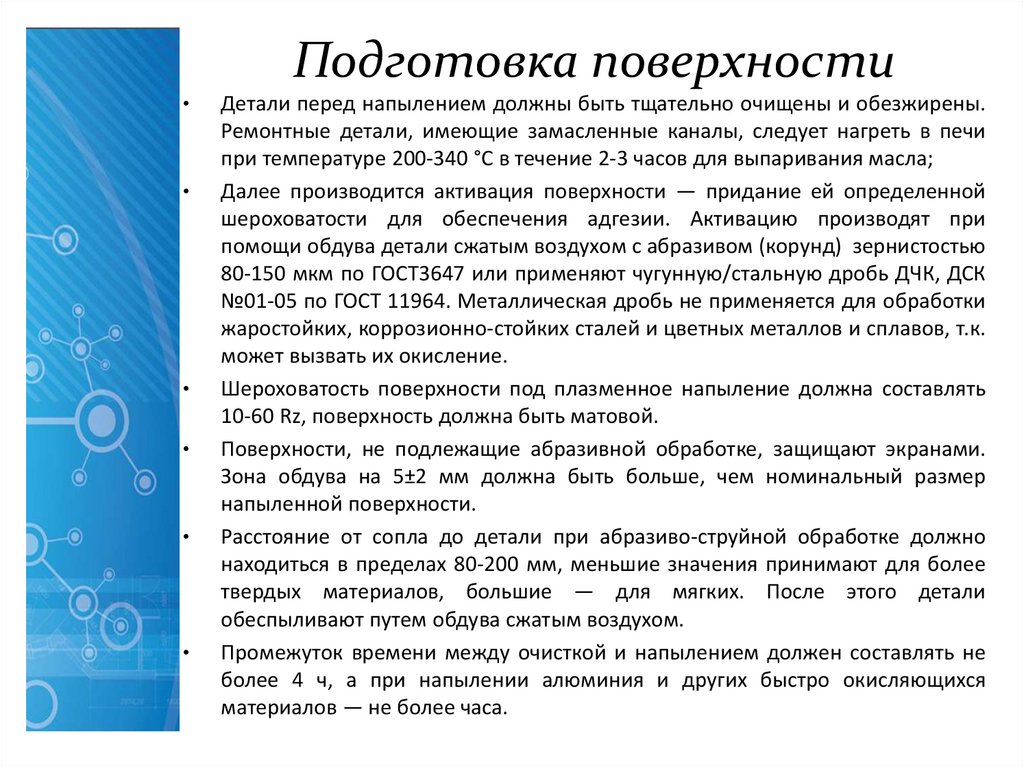 Детали перед напылением должны быть тщательно очищены и обезжирены.