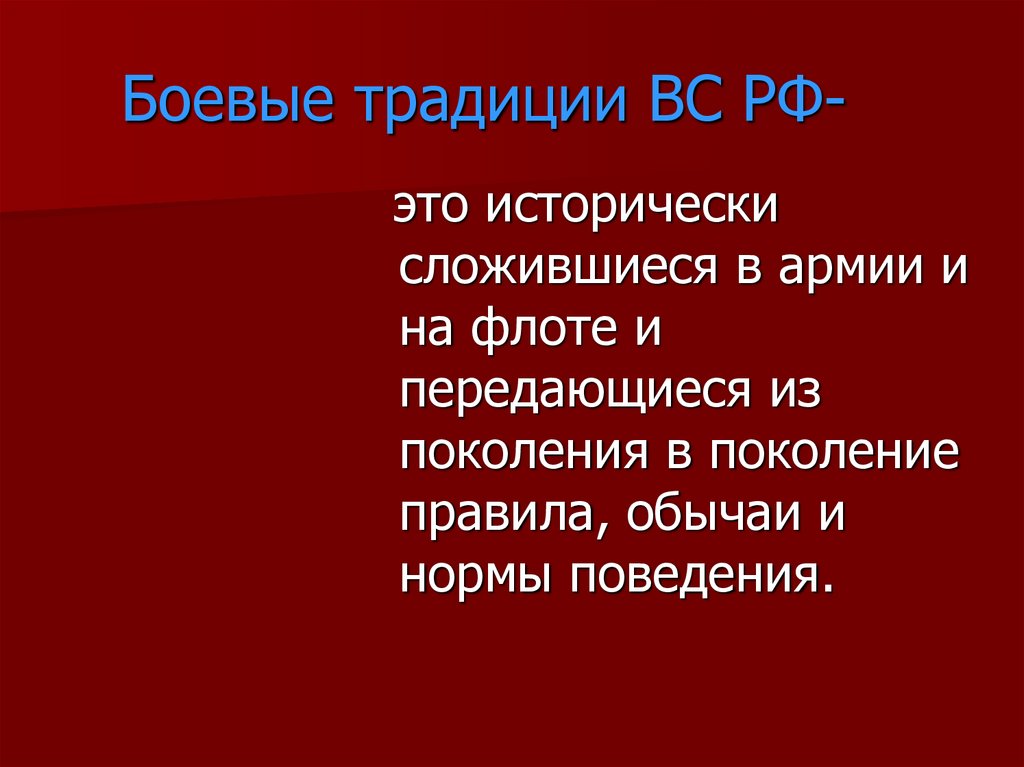 Боевые традиции ВС РФэто историческисложившиеся в армии и
