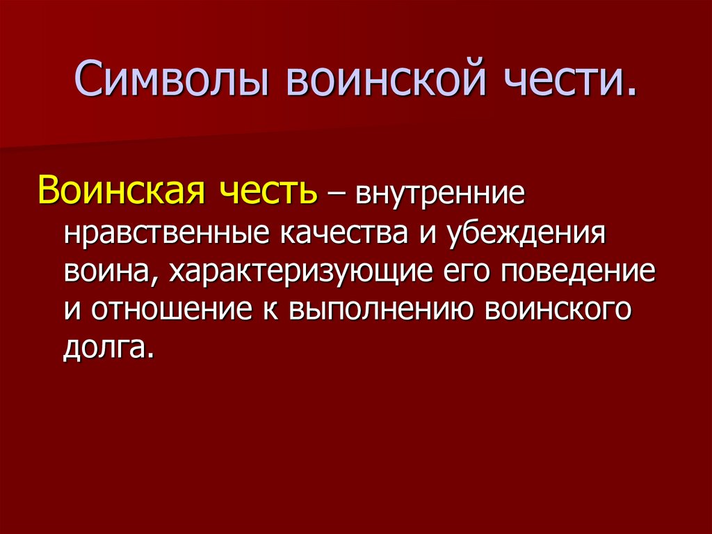 Боевые традиции Вооруженных Сил Российской федерации. Символы воинской чести
