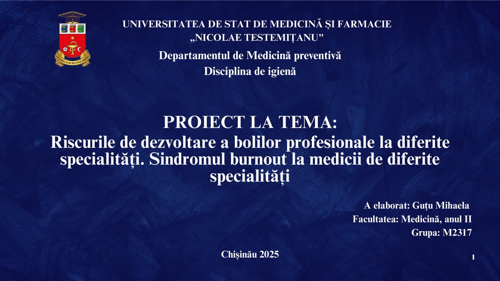 Riscurile de dezvoltare a bolilor profesionale la diferite specialităţi. Sindromul burnout la medicii de diferite specialităţi