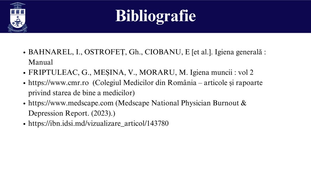 BibliografieBAHNAREL, I., OSTROFEŢ, Gh., CIOBANU, E [et al.]. Igiena generală :