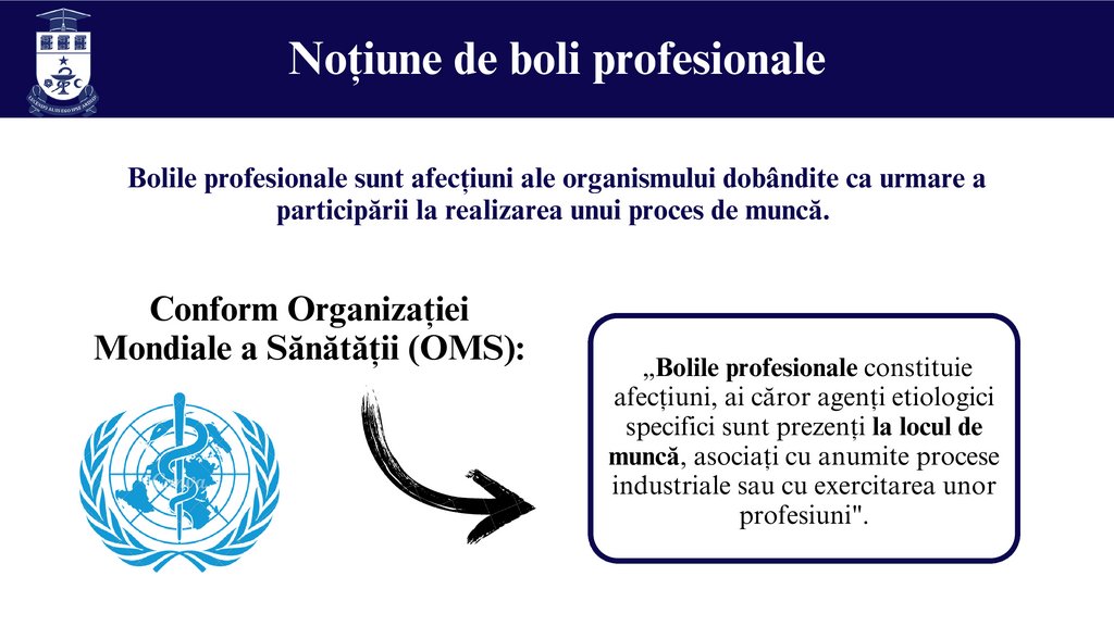 Noţiune de boli profesionaleBolile profesionale sunt afecțiuni ale organismului dobândite ca urmare a